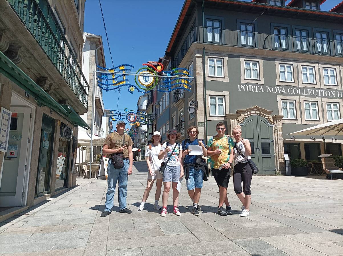 W dniach 04.06-10.06.2023 uczniowie Społecznego Liceum Ogólnokształcącego wzięli udział w spotkaniu projektu Erasmus+ w Portugalii. Tym razem szkołą goszczącą była Agrupamento de Escolas Trigal de Santa Maria. Razem z uczniami z Macedonii Północnej, Rumunii, Turcji i Portugalii uczestnicy spotkania realizowali zadania projektowe związane m.in. z doradztwem zawodowym, zawodami przyszłości oraz życiem codziennym nastolatków w krajach europejskich. Podczas pobytu w Portugalii uczniowie zwiedzili piękną Bragę i Porto, uczestniczyli w zajęciach sportowych, na których uczyli się gry w golfa czy stawiali pierwsze kroki w windsurfingu. Zwiedzili też stadion piłkarski klubu SC Braga oraz uczestniczyli w spotkaniu w Ratuszu z Pełnomocnikiem ds. Edukacji, panią Carlą Sepúlvedą. W drodze powrotnej uczniowie mieli sporo czasu na lotnisku w Monachium, co pozwoliło na spacer po tym pięknym bawarskim mieście.