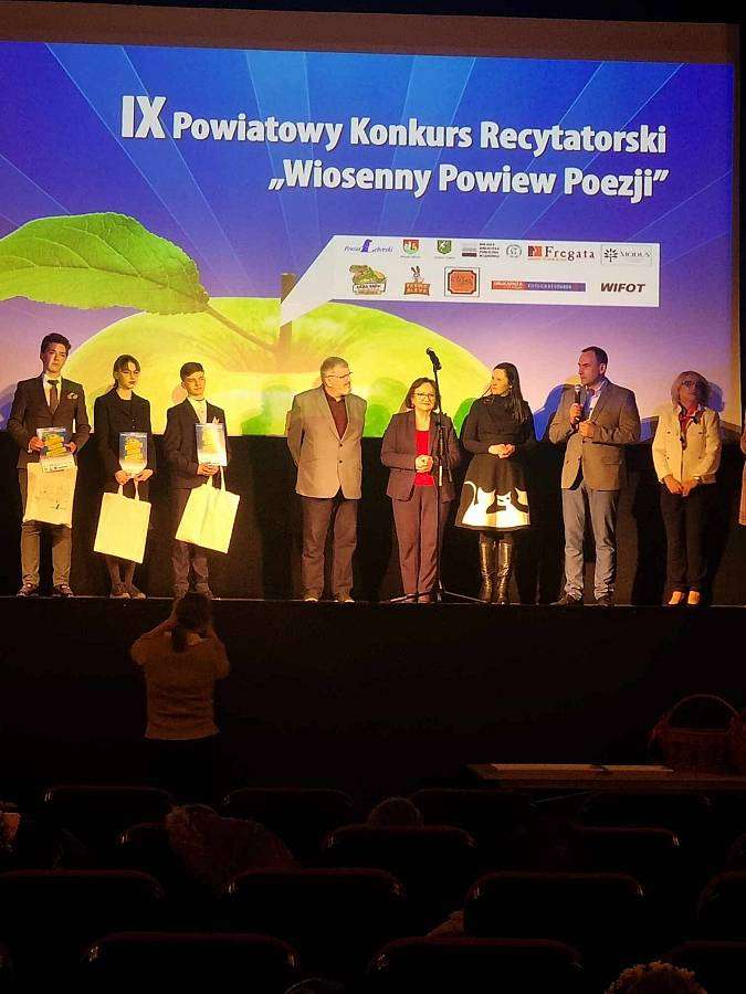 Patryk Buczma z klasy 1c zajął I miejsce w kategorii Szkół Ponadpodstawowych. Patryk recytował "Przesłanie Pana Cogito" - wiersz Zbigniewa Herbrta. Szkołę reprezentowała również Agnieszka Piasecka z klasy 1b, która przygotowała fragment "Pana Tadeusza". Na laureatów czekały nagrody rzeczowe. Uzupełnieniem tych nagród są warsztaty z aktorem Marcinem Borchardtem.
