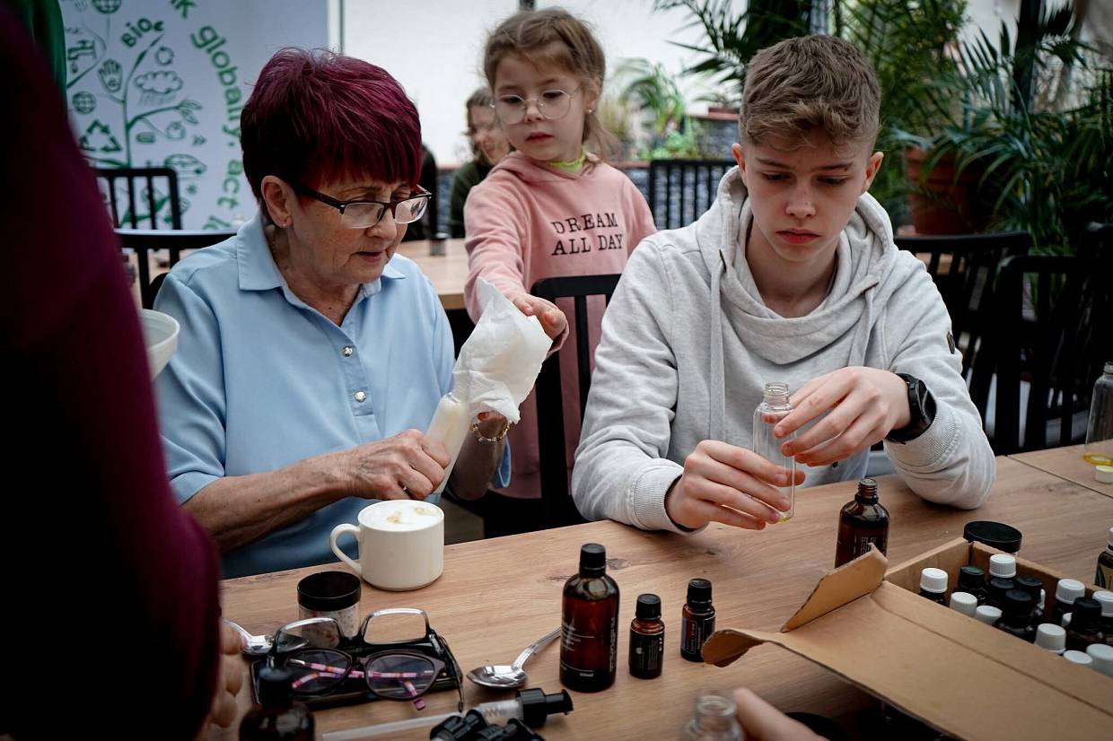 W czwartek 19.12 kolejna grupa uczniów tym razem z klasy 1: Kinga, Uljana, Patrycja, Szymon i Jeremi i uczestniczyli w warsztatach międzypokoleniowych w Gdańsku pt. „Jakość życia i przyszłość pokoleń w nowej epoce — czyli zrównoważeni w myśleniu i działaniu”. Projekt został przygotowany przez Dom Pojednania i Spotkań w Gdańsku. Celem projektu było umocnienie więzi pokoleniowych, budowanie poczucia tożsamości osobistej i współpraca młodzieży z seniorami. Podczas warsztatów uczniowie współpracowali z seniorami wykonując środki czystości i kosmetyki z naturalnych materiałów.