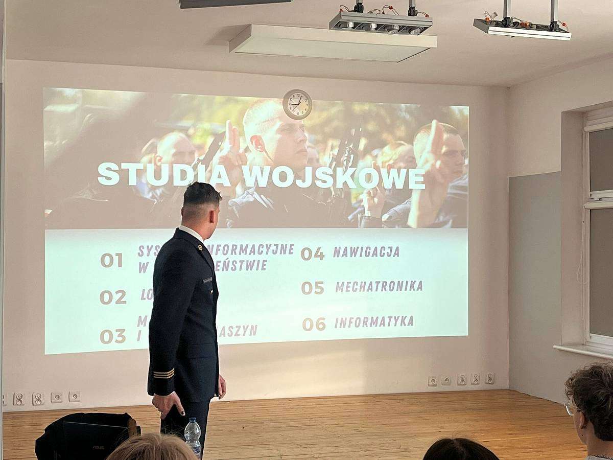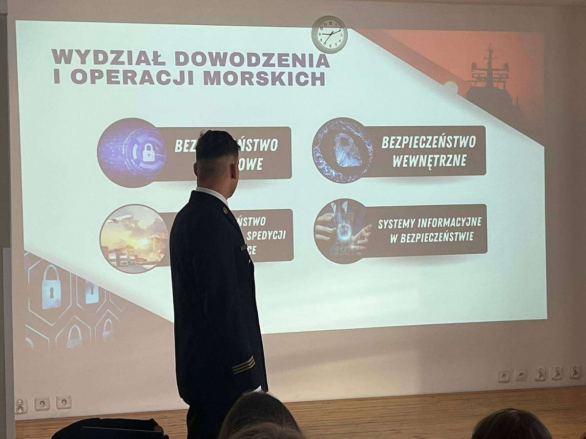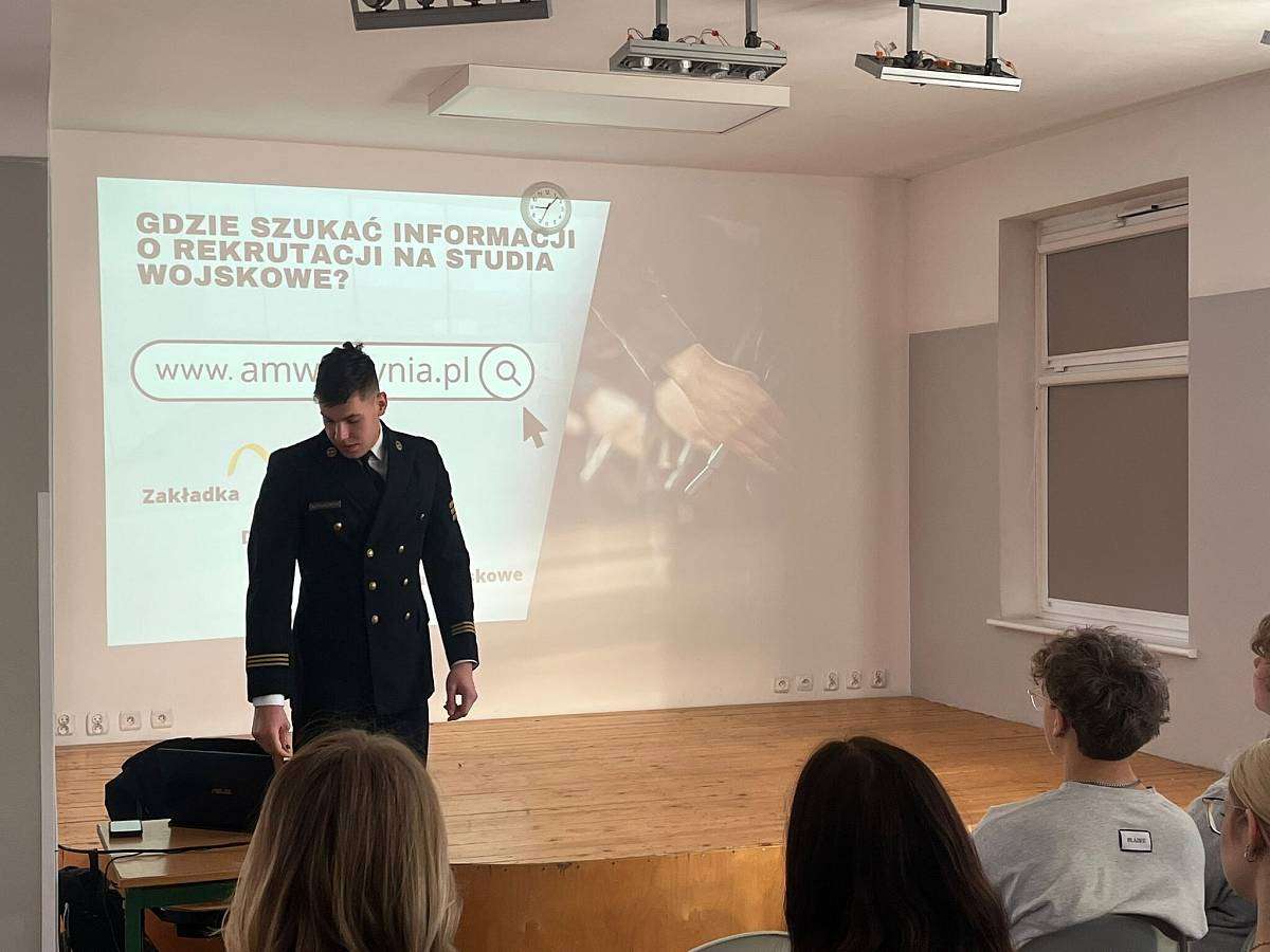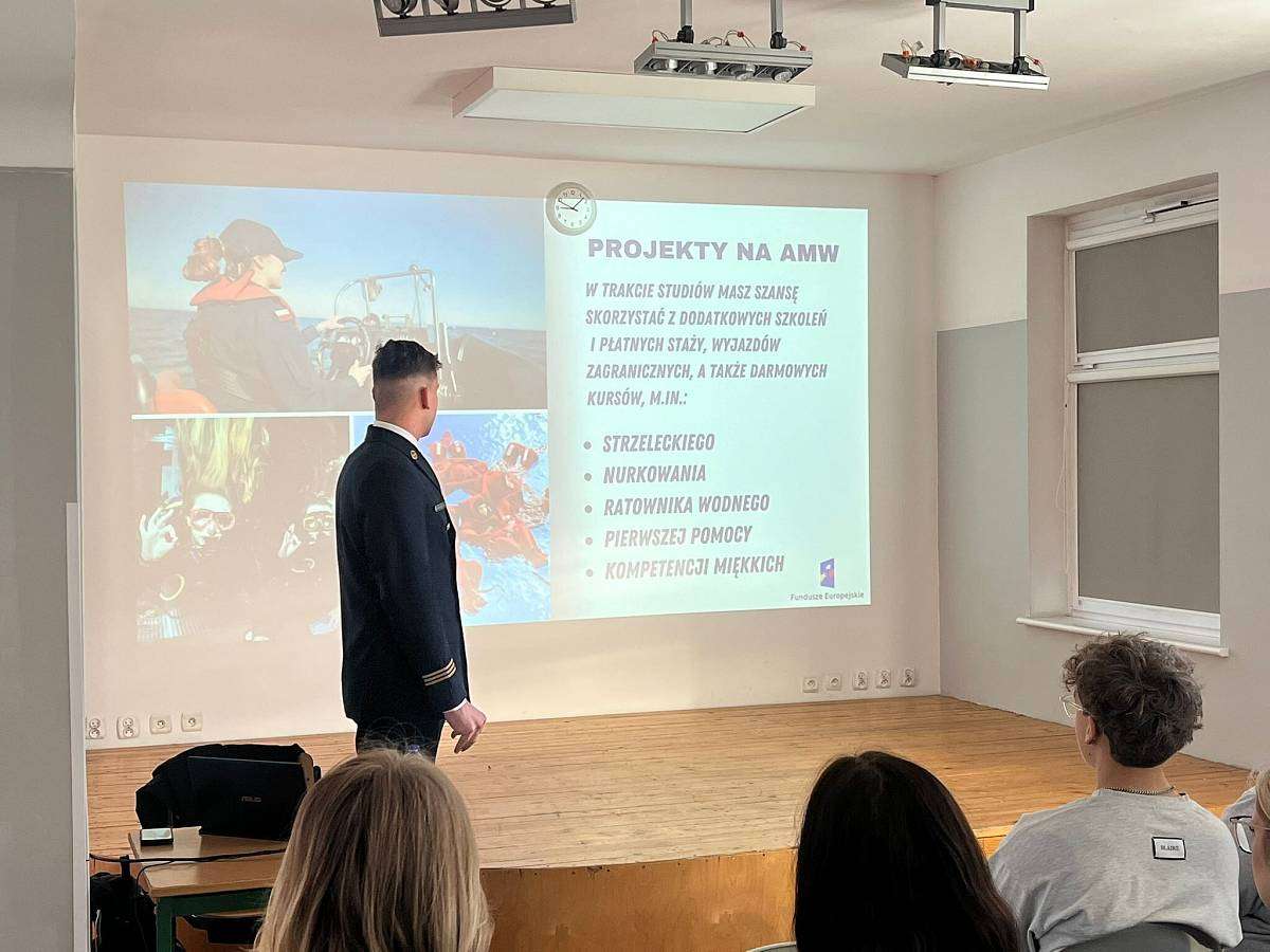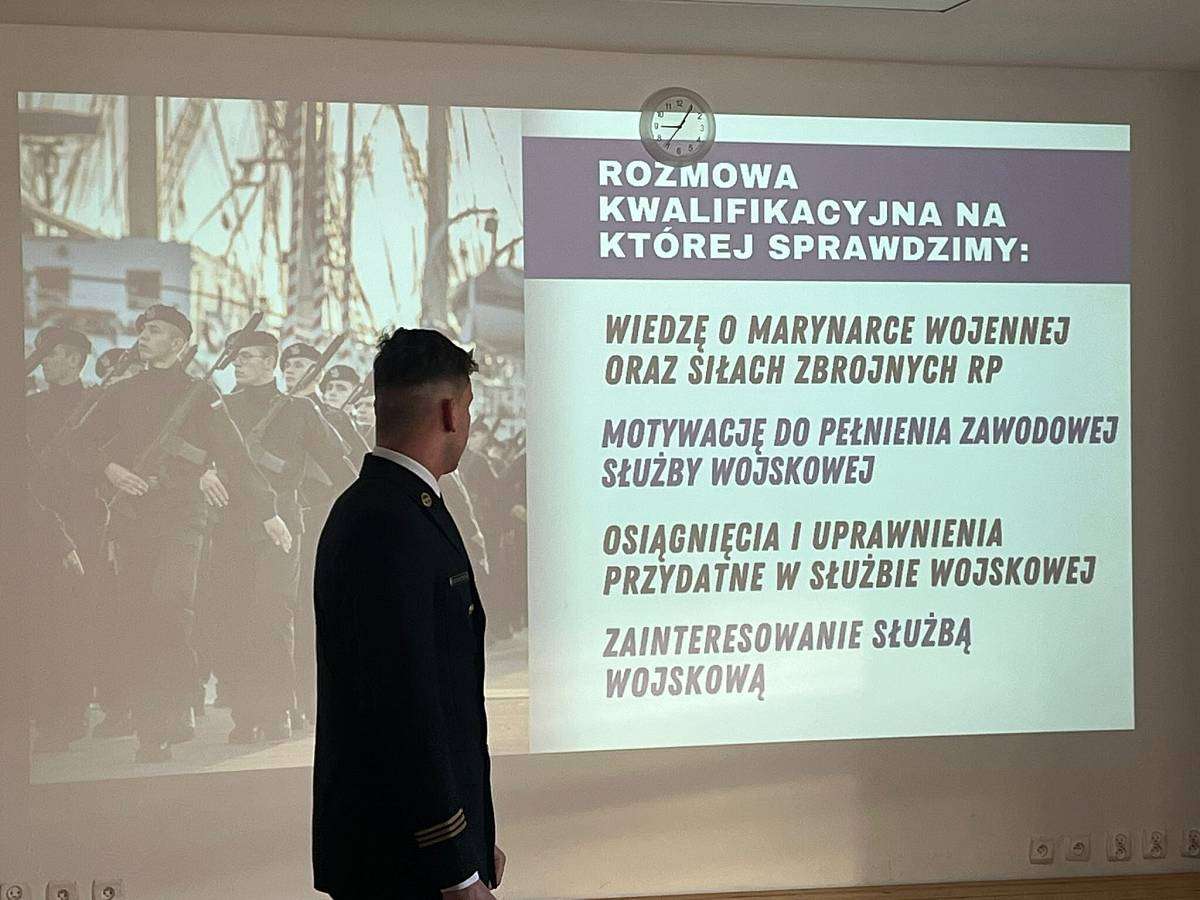 W poniedziałek 16.02 gościliśmy w szkole naszego absolwenta MACIEJA BARANOWSKIEGO . Maciej jest obecnie studentem III roku Akademii Marynarki Wojennej w Gdyni i przedstawił swoim młodszym kolegom z klasy 4 i 3 jak wyglądają studia na jego uczelni, jak należy przygotować się do rozmowy kwalifikacyjnej i jakie kompetencje powinien posiadać przyszły student tej uczelni.