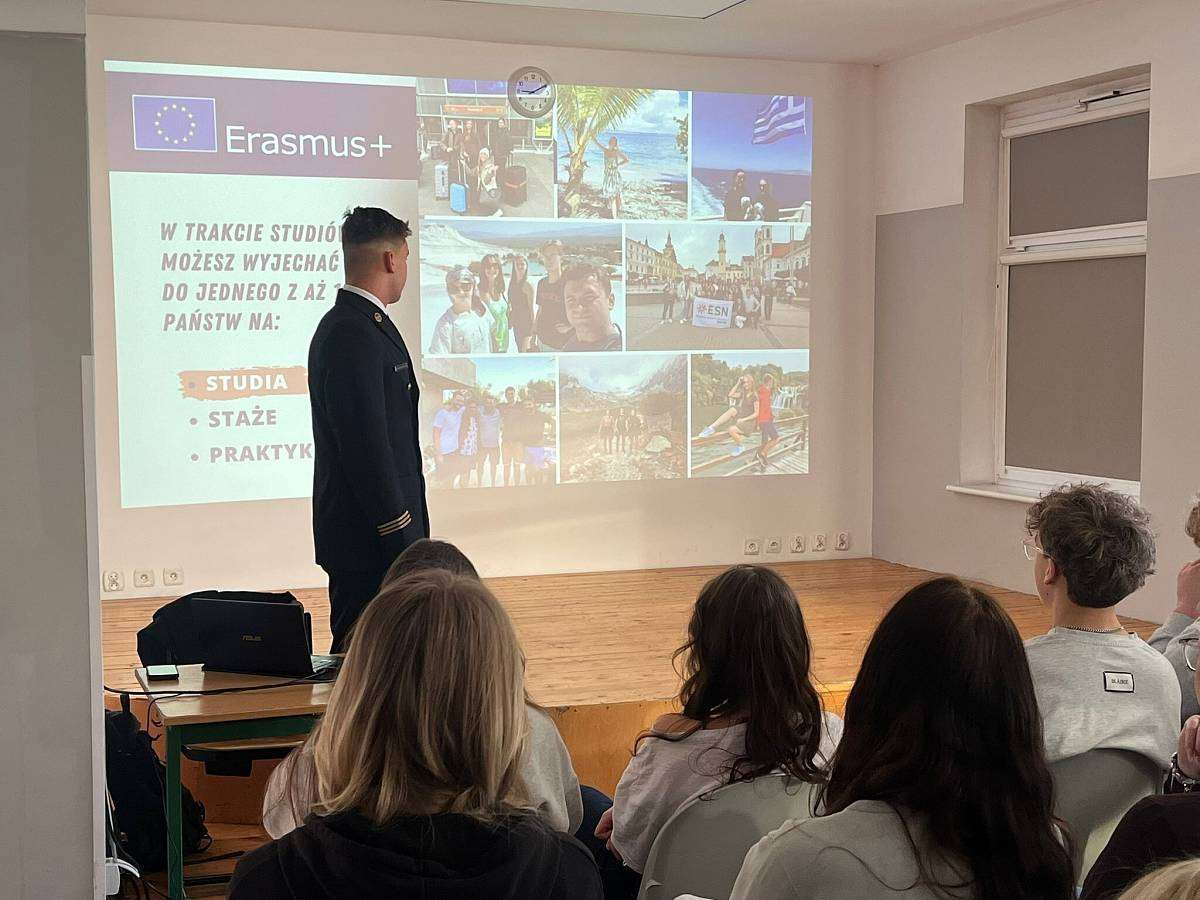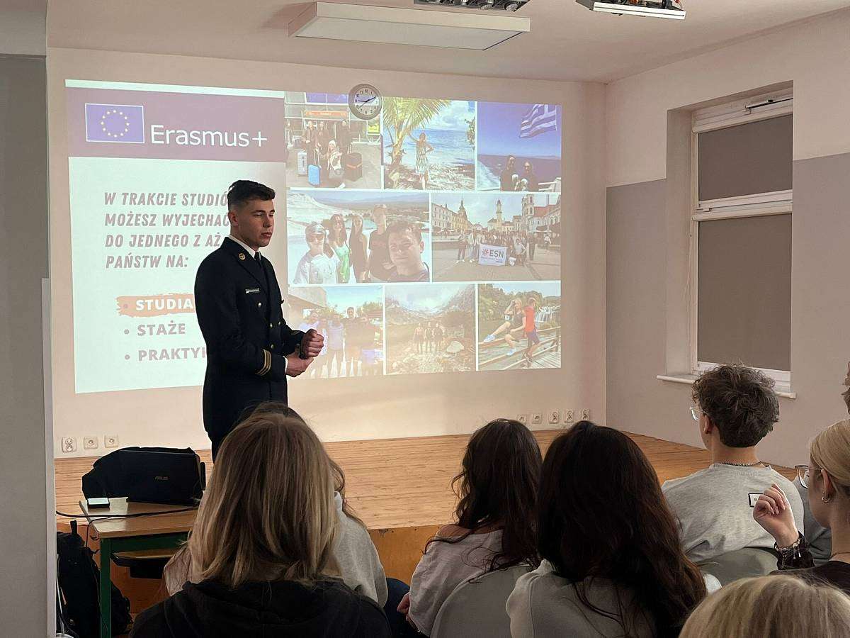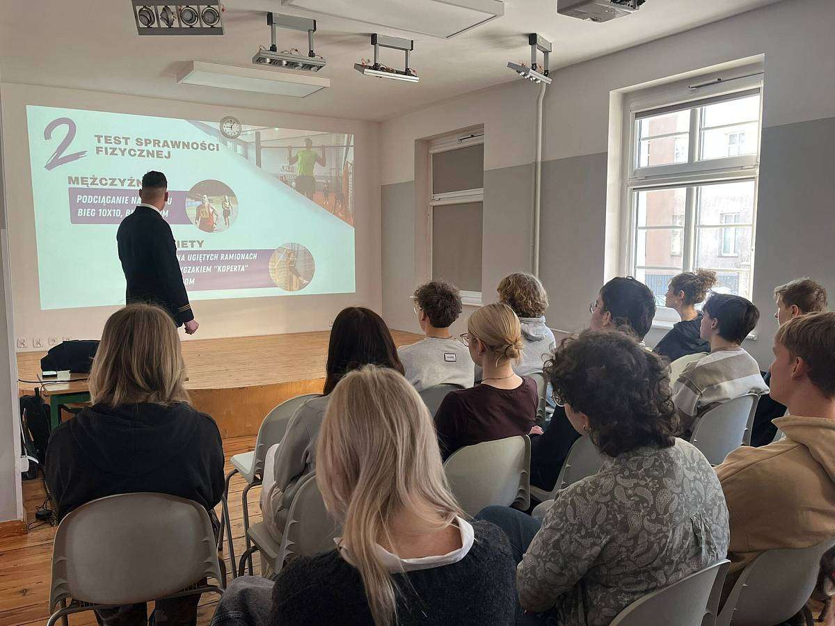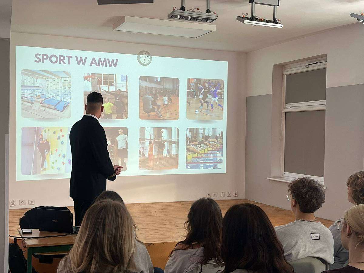 W poniedziałek 16.02 gościliśmy w szkole naszego absolwenta MACIEJA BARANOWSKIEGO . Maciej jest obecnie studentem III roku Akademii Marynarki Wojennej w Gdyni i przedstawił swoim młodszym kolegom z klasy 4 i 3 jak wyglądają studia na jego uczelni, jak należy przygotować się do rozmowy kwalifikacyjnej i jakie kompetencje powinien posiadać przyszły student tej uczelni.